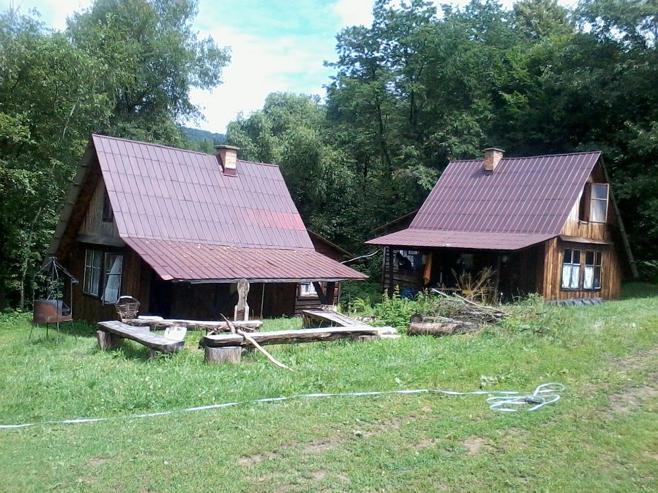 Domki na tle lasu